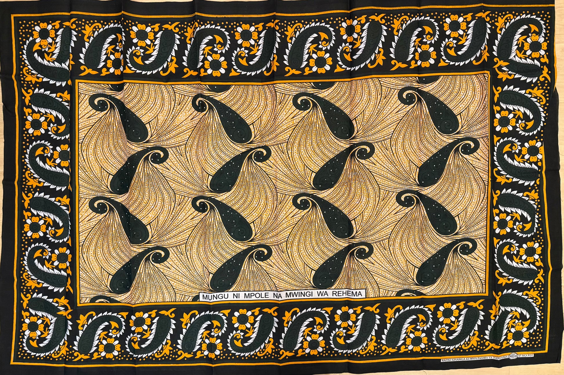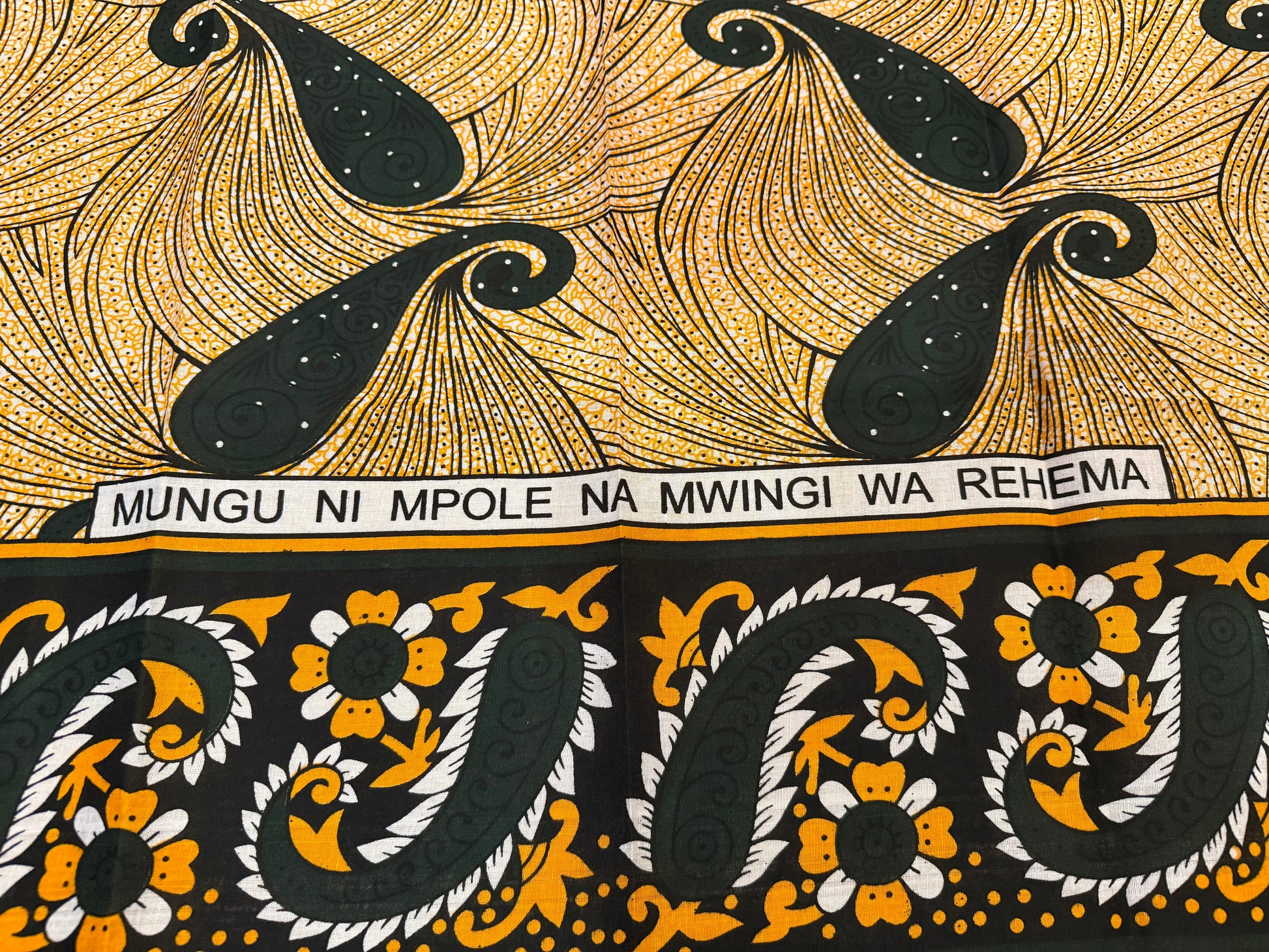 Kanga or Leso is a very common vibrant and colorful cotton fabric traditionally worn by women in East Africa. It is a versatile garment that holds cultural value with intricate designs, recurring motifs and Swahili proverbs or religious sayings. Lesos are embedded in the East African culture and are a symbol of identity, freedom, fashion, confidence, beauty and respect. They can used as wraps around the waist, head, shoulders or to wrap babies as they are carried behind an adults' back. A leso can also be gifted to convey love, respect or encouragement.