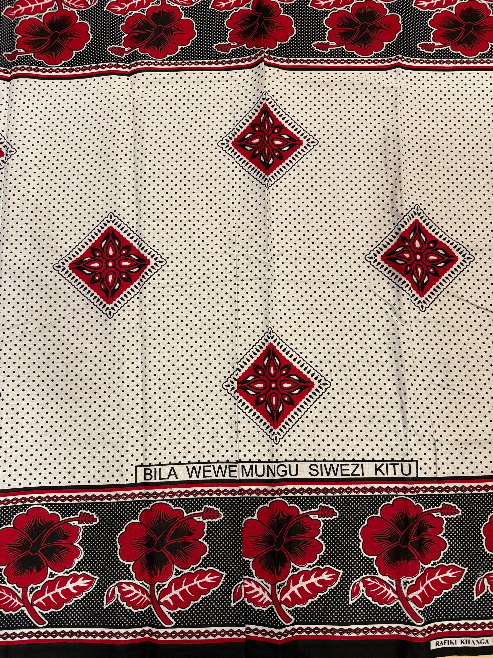 Kanga or Leso is a very common vibrant and colorful cotton fabric traditionally worn by women in East Africa. It is a versatile garment that holds cultural value with intricate designs, recurring motifs and Swahili proverbs or religious sayings. Lesos are embedded in the East African culture and are a symbol of identity, freedom, fashion, confidence, beauty and respect. They can used as wraps around the waist, head, shoulders or to wrap babies as they are carried behind an adults' back. A leso can also be gifted to convey love, respect or encouragement.