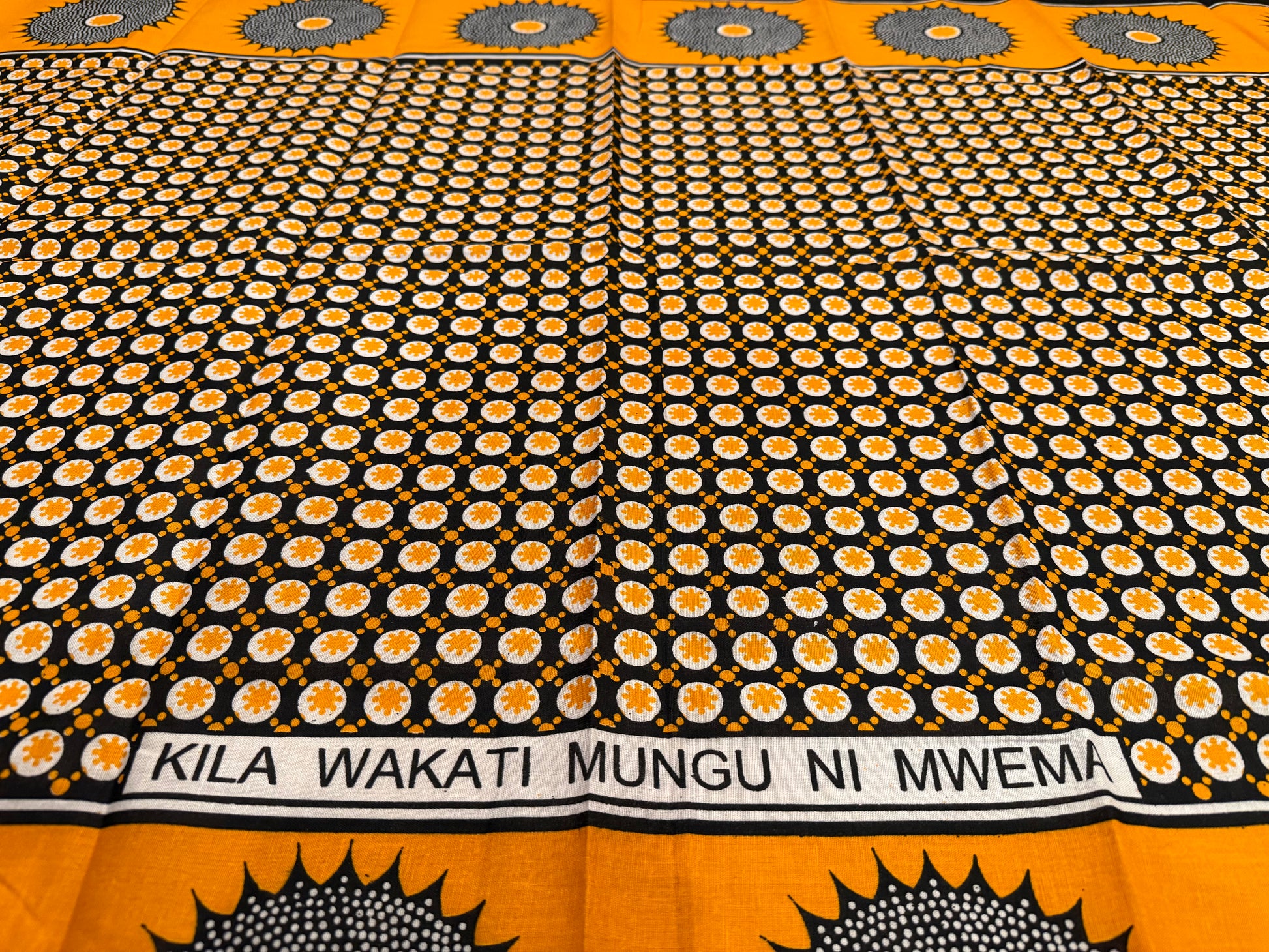 Kanga or Leso is a very common vibrant and colorful cotton fabric traditionally worn by women in East Africa. It is a versatile garment that holds cultural value with intricate designs, recurring motifs and Swahili proverbs or religious sayings. Lesos are embedded in the East African culture and are a symbol of identity, freedom, fashion, confidence, beauty and respect. They can used as wraps around the waist, head, shoulders or to wrap babies as they are carried behind an adults' back. A leso can also be gifted to convey love, respect or encouragement.