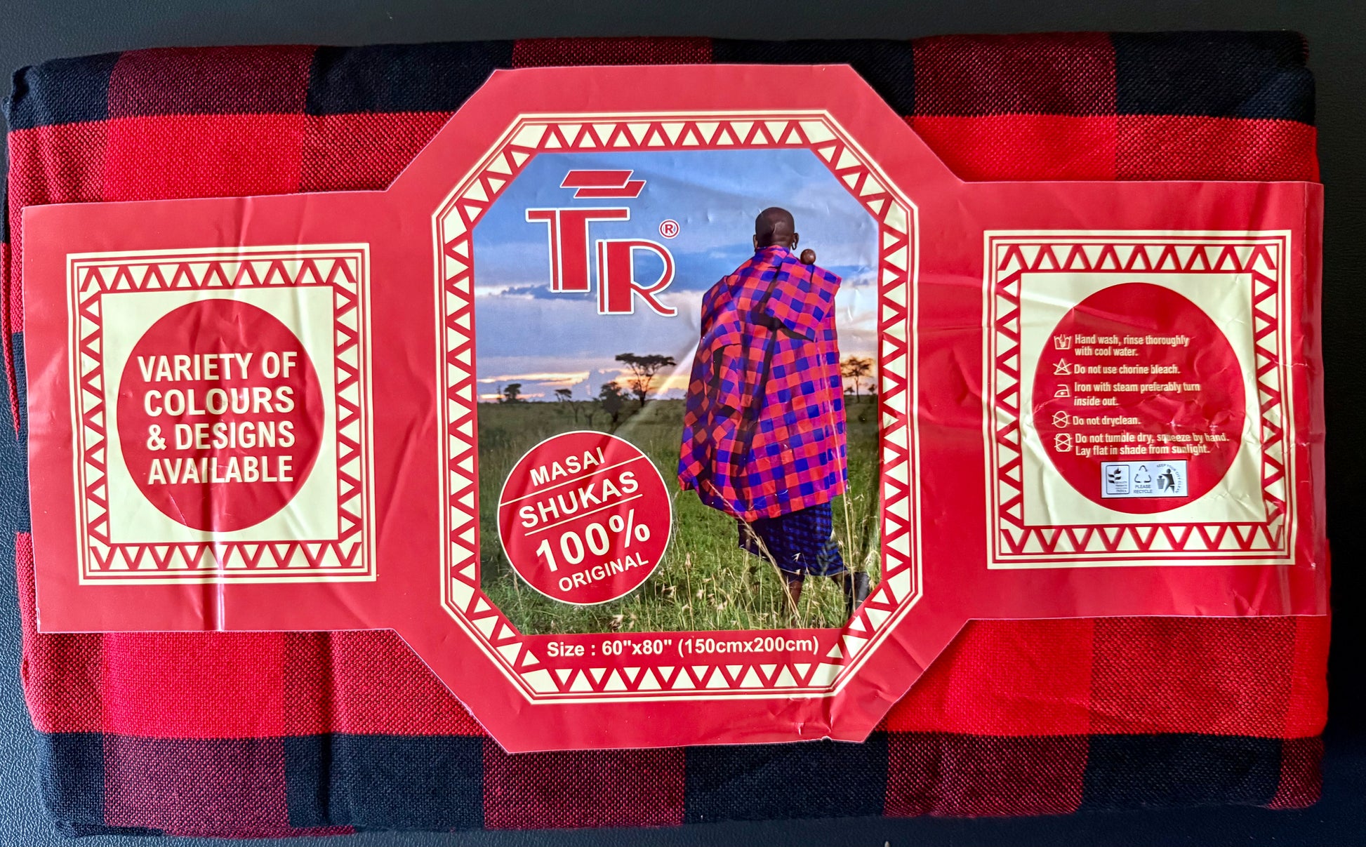 The traditional Maasai shuka is more than a garmet. It symbolizes the cultural identity and unity of the Maasai people of East Africa (Kenya and Tanzania). Furthermore, wearing a Maasai shuka is a unique way of appreciating and celebrating the Maasai culture. The shuka is deeply connected to the Maasai people's heritage and lifestyle. This vibrant and iconic garment is multipurpose and can be used as a wrap around, picnic blanket or for indoor decor. It is imported from East Africa; easy to wash, durable, appealing and very unique. Measures 80 inches x 60 inches.
